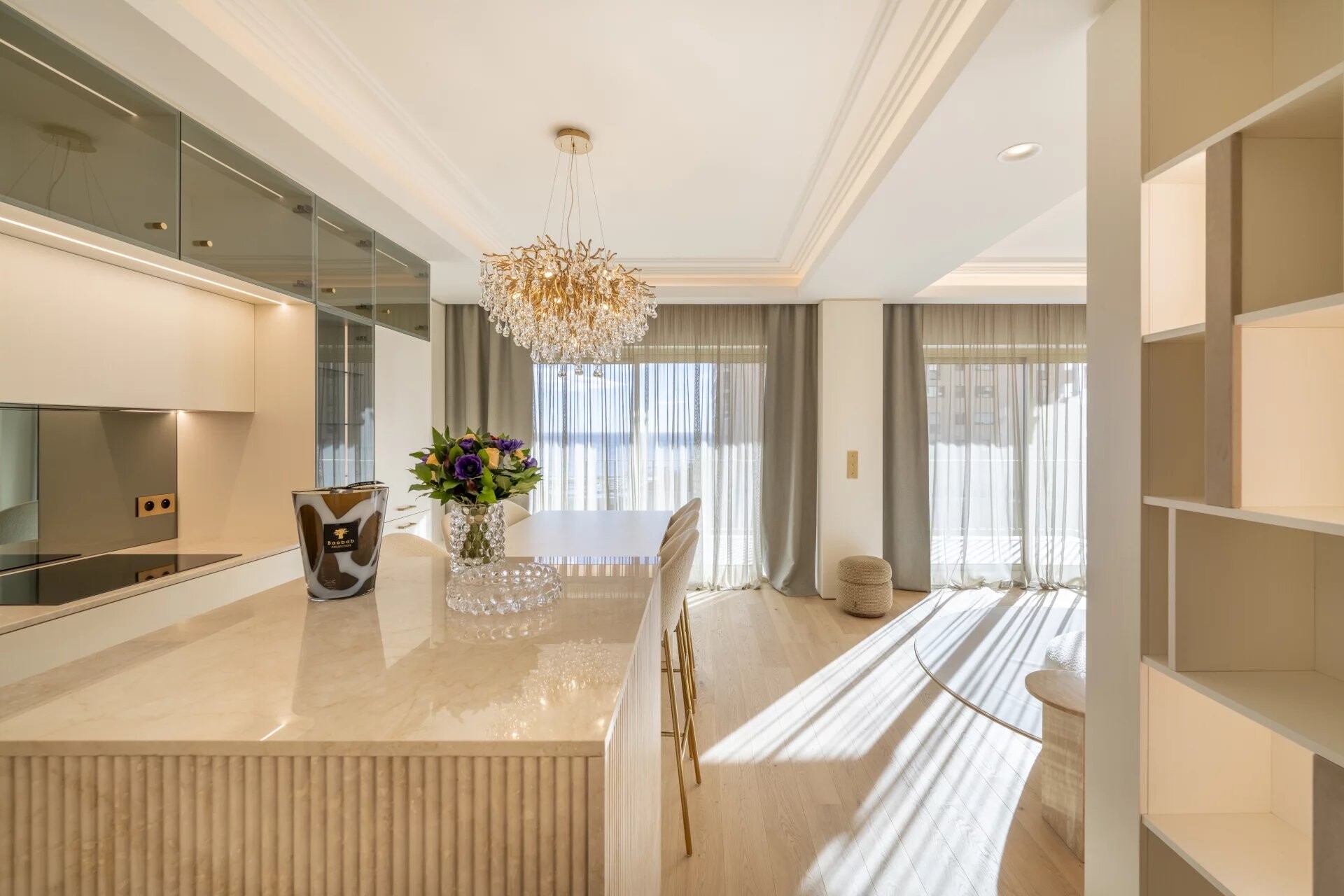 This magnificent 2 bedroom apartment, located on the 5th floor, has a living area of 91 m² and 25 m² of terraces, completely renovated with quality materials.